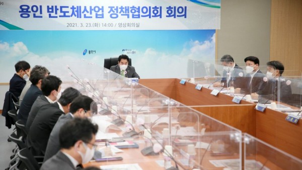 용인시는 23일 시청 영상회의실에서 반도체 소재·부품·장비(이하 소부장) 기업 지원 방안을 모색하기 위해 ‘제2회 용인 반도체산업 정책협의회’를 열었다. 제2회 반도체산업 정책협의회 이날 회의엔 백군기 용인시장을 비롯해 박재근 한국반도체디스플레이기술학회장, 김정…