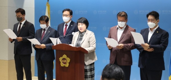 지난달 30일 집중호우로 취소됐던 김동연 경기도지사의 취임식을 오늘 개최한다고 한다. 7월 15일(금) 기자회견_왼쪽부터 유형진(광주4), 김상곤(의정부1), 지미연(용인6), 안명규(파주5), 김현석(과천1)경기도의회 국민의힘(대표의원 곽미숙, 고양6)은 도민과 소통하겠다는 취지 자체에는 반대하지 않지만, 보여주기식 소통에 치중하느라 진정한 소통은 소홀히 하는 것은 아닌지 우려를 표명한다. …