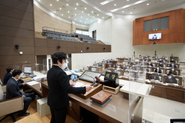 용인시의회는 20일 본회의장에서 제260회 임시회 개회식과 제1차 본회의를 열었다.용인시의회, 제260회 임시회 개회 김상수 부의장은 개회사를 통해 “지난 정례회 기간에 있었던 행정사무감사 지적사항들은 세심히 검토해 시정 운영에 밑거름이 될 수 있도록 노력해달라”며, “내년도 예산은 정확하고 신속하게 집행해 코로나19로 어려움을 겪고 있는 지역 경제에 활력을 불어넣을 수 있도록 최선을 다 해 달라”고…