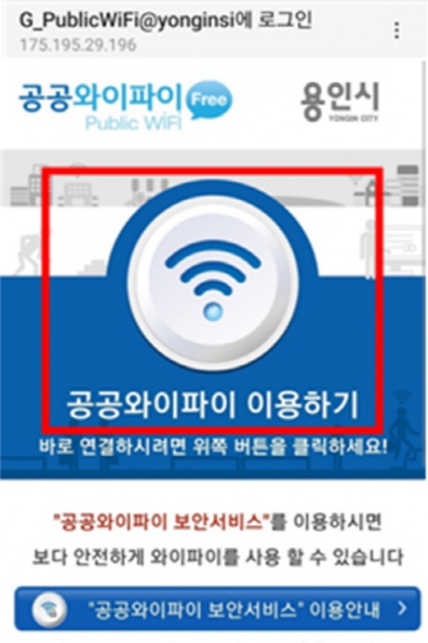 용인시 무료 공공와이파이 이용자가 지난 10개월간 132만 명에 달하는 것으로 나타났다. 사용 데이터도 109기가 바이트에 이른다.용인시 공공와이파이 접속화면 1일 용인시에 따르면 관내 239곳의 공공장소에 329개의 무선중계설비(AP)를 설치, 개방형 공공와이파이를 제공하고 있다. 개방형 공공와이파이란 시민 누구나 스마트폰, 태블릿 PC를 통해 무료로 인터넷에 접속할 수 있는 AP를 설…