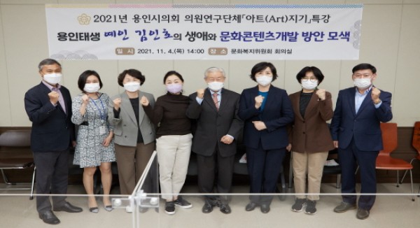 용인시의회 의원연구단체 아트(art)지기(대표 이은경)는 4일 오후 2시 문화복지위원회 회의실에서 전문가 초청 특강을 진행했다.의원연구단체 아트(art) 지기, 전문가 초청 특강 개최 이번 특강은 용인에서 태어난 예인(藝人) 김인호의 생애를 돌아보고, 특례시 위상에 걸맞은 문화도시 용인을 위해 다양한 문화콘텐츠개발 방안을 모색하기 위해 마련됐다. 특강을 진행한 이병옥 용인대…