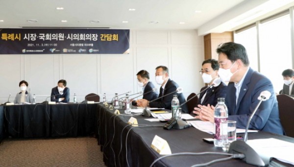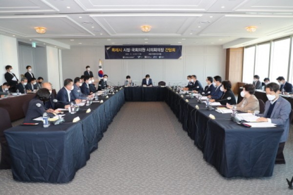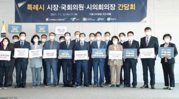 전국특례시시장협의회는 3일 서울 여의도 서울시티클럽 파크뷰에서 특례 사무 이양을 위한 시장·국회의원·시의장 간담회를 개최했다.이날 간담회는 지방분권법 개정 확보 방안을 논의하고, 대도시 특례사무를 담은 제2차 지방일괄이양법 국회 정상 심의 촉구 성명서를 발표하기 위하여 열렸다. 이날 간담회에는 허성무 창원시장(전국특례시시장협의회 대표회장), 이춘표 고양시 제2부시장(대참), 염태영 수원시장, 백군기 용인시장…