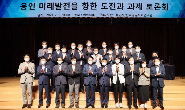 용인시는 9일 시청 에이스홀에서 민선7기 3주년을 맞아 전문가와 시민이 함께 참여해 시 미래 발전 방향을 심도 있게 논의하는 토론회를 개최했다.용인 미래발전을 향한 도전과 과제 토론회 후 관계자들이 기념촬영을 하고 있다. 토론회는 코로나19 확산세를 고려해 사전 참여 신청 시민을 대상으로 용인시 공식 유튜브 채널에서 비대면으로 진행됐다.용인미래발전을 향한 도전과 과제 토론회 &…