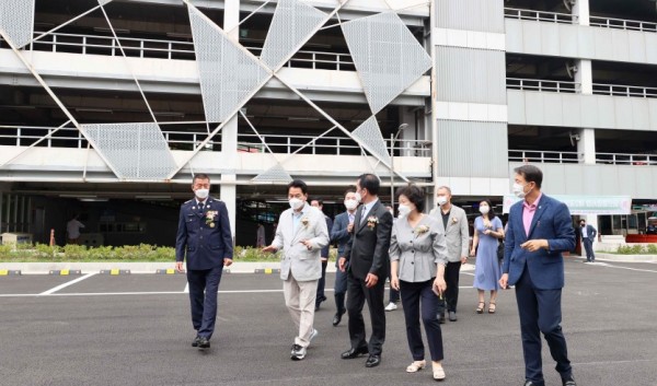 용인시는 처인구 김량장동 용인중앙시장 내 주차공간 35면을 갖춘 임시노외주차장 조성을 완료해 5일부터 시민들에게 개방한다.이 주차장은 기존 용인중앙시장 제2공영주차장 옆 부지(김량장동 123-4번지) 1290㎡에 지평식 주차창으로 조성됐다. 1. 백군기 용인시장이 3일 조성을 완공한 용인중앙시장 내 임시노외주차장을 둘러보고 있다.당초 시는 이 부지에 타워형 주차장 신설을 목적으로 중기지방재정 계획을 수립해 투자심사를 받았고, …