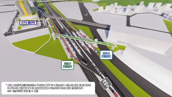 용인시는 8일 국내에선 처음으로 고속도로와 GTX 역사를 연계한 환승 체계를 구축하기 위해‘경부고속도로-GTX용인역 환승체계 구축 타당성 검토용역’에 착수했다고 밝혔다. GTX-역사-환승센터-시범사업-공모안(조감도)1지난해 11월 시가 제안한 GTX용인역과 경부고속도로를 잇는 상공형 환승정류장 설치 아이디어가 국토교통부의‘수도권광역급행철도(GTX) 역사 환승센터 시범사업’공모에 우수사례로 선정돼 기본계획비 1억5천만원을 …