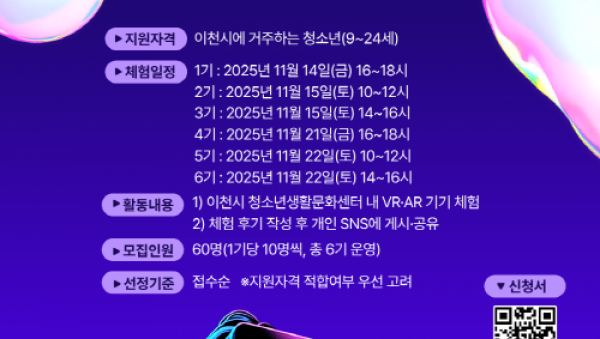 이천시 청소년생활문화센터, 가상현실(VR) 체험단 모집