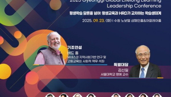 경기도평생교육진흥원은 오는 23일 수원 노보텔에서 ‘2025 경기 글로벌 평생학습 리더십 콘퍼런스(Gyeonggi Global Lifelong Learning Leadership Conference, GLLC)’를 개최한다.포스터(6)올해 처음 열리는 GLLC는 ‘평생학습 담론을 넘어: 평생교육과 HRD가 교차하는 학습생태계’를 주제로 열린다. HRD(인적자원개발, Human Resources Development)는 조직과 …