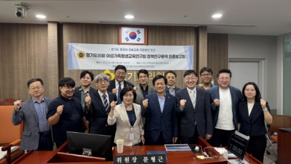 경기도의회 여성가족평생교육연구회(회장 문형근, 여성가족평생교육위원장)는 9월 9일(화) 오후에 경기도의회 여성가족평생교육위원회 회의실에서 「경기도 중장년 진로교육 지원방안 연구」 최종보고회를 개최하였다.250909 여성가족평생교육연구회, 경기도 중장년 진로교육 지원방안 연구 최종보고회 …