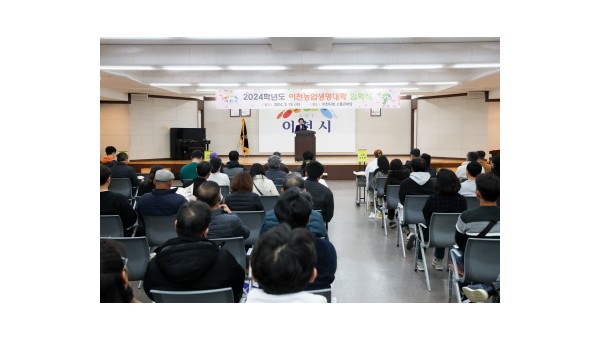 이천시(시장 김경희)는 13일 농업생명대학 입학생 및 내빈 등 120여 명이 참석한 가운데 이천시청에서 2024학년도 이천농업생명대학 입학식을 실시했다. 이천농업생명대학 입학식 (1).jpg 이 날 행사는 개강식과 학사운영에 대한 교육과정 안내 및 농작업안전교육으로 진…