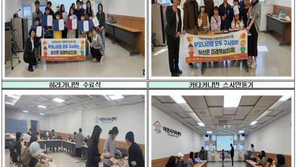 이천시가족센터(센터장 박명호)는 지난 28일 아동대상 이중언어교실-일본어반 수료식을 진행했다고 전했다. 센터는 지난 2월부터 10월까지 매주 2시간씩 총 9개반(중국어반3개, 베트남어반2개, 캄보디아어반2개, 일본어반2개), 총72명의 학생들이 수업에 참여하였고, 해당 반마다 각각의 원…