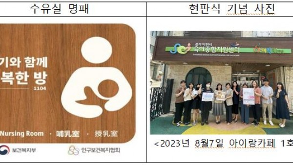 □ 이천시는 세계모유수유주간(8월 1일 ~ 7일)을 기념하여 2023년 8월 7일 경기이천시육아종합지원센터 아이랑카페 1호점內 수유실에, 인구보건복지협회에서 지원하는 “아기와 함께 행복한 방” 명패교체 현판식과 캠페인 추진을 진행했다. □ 경기이천시육아종합지원…