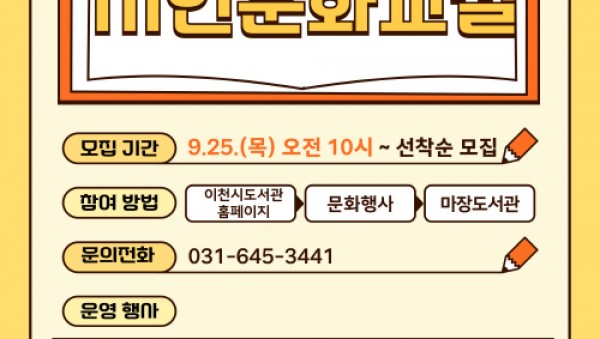 이천시 마장도서관, 하반기 ‘시민문화교실’ 운영