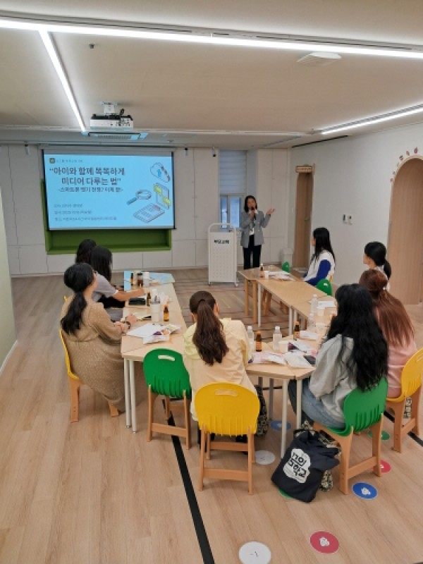 이천시 24시간 아이돌봄센터(아이다봄)는 10월 16일(목), ‘아이와 함께 똑똑하게 미디어 다루는 법’이라는 제목으로 소그룹 부모교육을 했다.5. 이천시 아이다봄 10월 소그룹 부모교육 실시1 이번 교육은 가정에서 빈번히 발생하는 스마트폰·태블릿 사용 갈등을 줄이고, 부모-자녀가 함께 세우는 미디어 이용 원칙과 일상 적용 방법을 제공하기 위해 마련되어 큰 호응을 얻었다. 또한, 교육 후에는 ‘도어벨 만들…