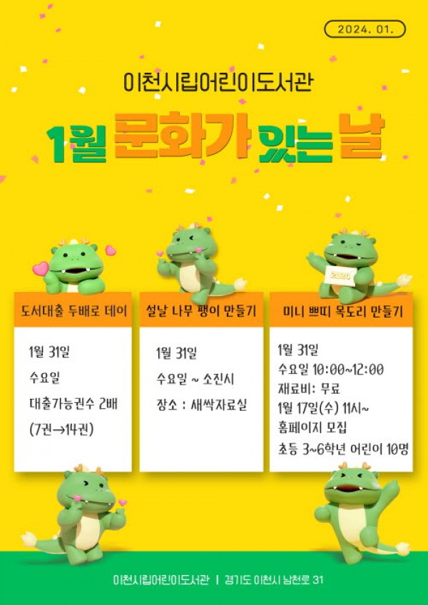 이천시립어린이도서관 ‘1월 문화가 있는 날’운영
