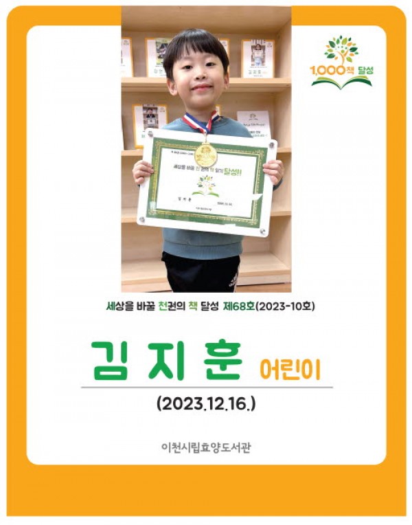효양도서관 세상을 바꿀 천 권의 책 68호 달성 김지훈 어린이