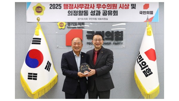 경기도의회 경제노동위원회 정하용 의원(국민의힘, 용인5)은 24일(월), 국민의힘 회의실에서 열린 ‘2025년 행정사무감사 우수의원 시상식’에서 행정사무감사 우수위원으로 선정되었다. 이번 선정은 행정사무감사 기간 동안 도민생활과 직결된 핵심 현안들을 면밀히 점검하고, 구조적 문제를 드러내는 데 기여한 점이 높게 평가된 결과이다.251124_정하용_의원__2025년_행정사무감사_우수위원_선정1정하용 의원은 올해 행정사무감사에서 …