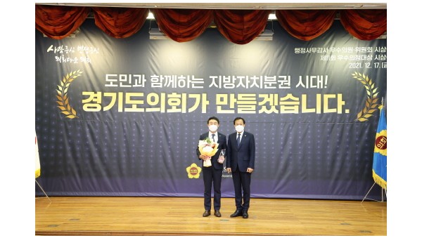 경기도의회 진용복(더불어민주당, 용인3) 부의장은 17일 경기도의회 대회의실에서 열린 2021년 경기도의회 의원 종무식에서 ‘제11회 대한민국시도의회의장협의회 우수의정대상’을 수상했다. 진용복 부의장, 제11회 대한민국시도의회의장협의회 우수의정대상 수상재선의원인 진 부의장은 전국 최초로 조례에 근거해 발족한 ‘경기도의회 자치분권발전위원회’ 총괄추진단장으로 활동하며 「지방자치법 시행령」 개정을 촉구하…