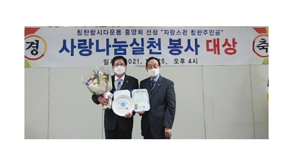 조광희 도의원, ‘칭찬합시다운동본부’에서 주최하는 사랑나눔실천 봉사대상 받아