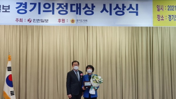 경기도의회 기획재정위원회 원미정 의원(더불어민주당, 안산8)은 25일 경기도의회 대회의실에서 인천일보가 주최한 ‘제6회 경기의정대상’ 시상식에서 의정활동 부문 대상을 수상했다. 211125 원미정 의원, 인천일보 경기의정대상 수상 원미정 의원은 경기도의회 3선 도의원으로서, 「경기도 재택의료센터 지정 및 지원에 관한 조례안」, 「경기도 사무위탁 조례 일부개정조례안」, 「경기도 금고의 지정 및 운영에 관한 조…