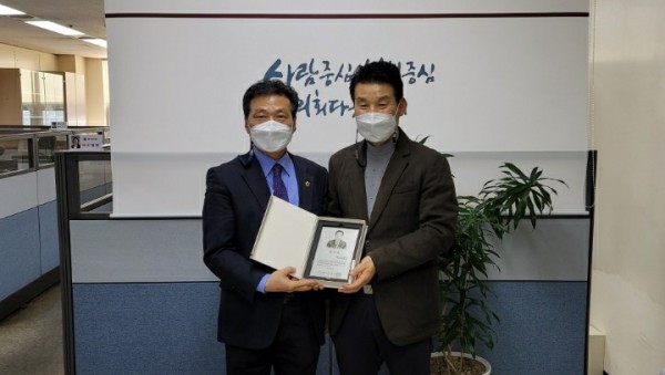 □ 경기도의회 건설교통위원회 권재형 부위원장(더불어민주당, 의정부3)은 1월 14일(목) 경기도전세버스운송사업조합으로부터 경기도 전세버스 운송사업 활성화에 노력해온 공로를 인정받아 감사패를 받았다.210114 권재형 의원, 경기도전세버스운송사업조합으로부터 감사패 받아□ 권 의원은 전세버스운송사업의 활성화 및 도민의 교통편의 증진을 위한「경기도 전세버스 운송사업 지원에 관한 조례안」을 올 12월 제정하여 전세버스 운송사업자에…