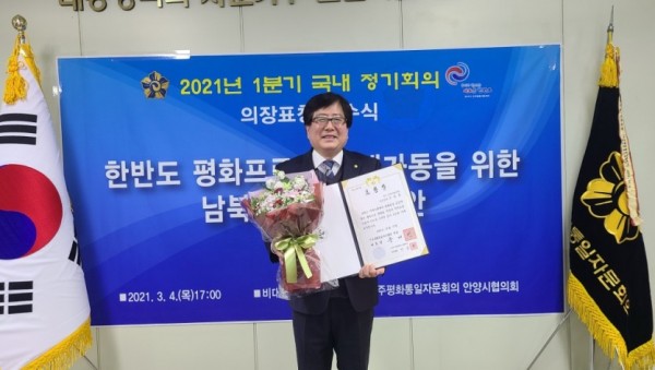 □ 경기도의회 건설교통위원회 조광희 의원(더불어민주당, 안양5)은 지난 4일(목) 민주평통안양시협의회에서 ‘민주평통 의장(대통령) 표창’을 받았다. 210305 조광희 의원- '민주평통 의장 표창' 수상_사진1ㅇ 이 날 표창수여식은 지난해 코로나19 지역확산으로 연기되었던 행사로, …