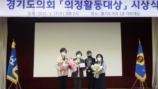 경기도의회 교육행정위원회 박옥분 의원(더불어민주당, 수원2)이 17일 경기도의회 대회의실에서 열린 ‘한국여성유권자경기연맹 의정상’시상식에서 의정상을 수상했다. 210317 박옥분 의원, 한국여성유권자연맹 의정상 수상한국여성유권자연맹 의정상은 사회현안을 발굴하고, 갈등해…