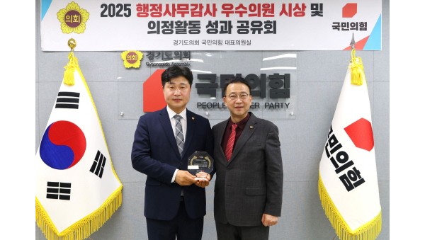 경기도의회 경제노동위원회 정하용 의원(국민의힘, 용인5)은 24일(월), 국민의힘 회의실에서 열린 ‘2025년 행정사무감사 우수의원 시상식’에서 행정사무감사 우수위원으로 선정되었다. 이번 선정은 행정사무감사 기간 동안 도민생활과 직결된 핵심 현안들을 면밀히 점검하고, 구조적 문제를 드러…