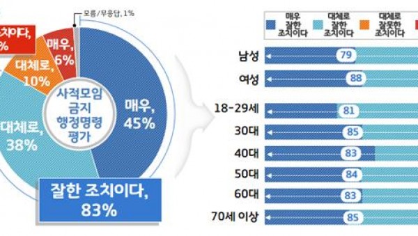 경기도민 83%, ‘5인이상 사적모임 금지’ 명령 “잘했다”