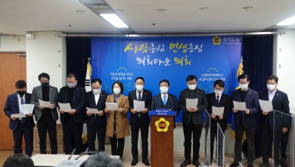 □ 경기도의회 건설교통위원회(위원장 김명원)는 1월 26일(화) 경기도의회 3층 브리핑 룸에서 광역버스 사무의 국가사무 전환에 따른 준공영제 예산의 국가 재정 부담 비율을 당초 합의대로 이행할 것을 촉구하는 기자회견을 가졌다.210126 건설교통위원회 기재부 국비 부담 합의사항 이행요구브리핑 사진○ 건설교통위원회는 “정부의 약속만 믿고 버스요금 인상까지 한 경기도의 입장에선 도무지 납득하기 어려운 기획재정부의 처사에 대해…