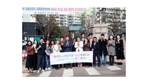 이상일 용인특례시장은 지난 21일 오후 시 예산으로 학교 앞 도로에 통학안전을 위한 승하차 베이를 설치한 처인구 포곡읍 영문중학교, 오래된 방음벽을 교체해 준 김량장동 역북초등학교를 차례로 방문해 현장을 살펴보고 학교 관계자, 학부모들과 대화를 나눴다. 21일 영문중에서 이상일 용인특례시장이 학교장과 학부모들과 기념사진을 찍고 있다 이 시장은 먼저 영문중을 찾아 정문 앞 도로변에 시가 새로 조성한 …