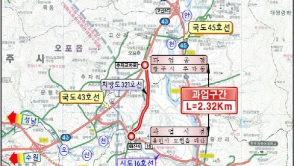 용인시 처인구 모현읍 매산리와 광주시 추자동을 연결하는 ‘지방도321호선 매산~일산간 도로 확포장공사’가 완료돼 25일 낮 12시부터 공식 개통한다. 위치도(매산~일산)매산~일산간 도로 확포장공사는 용인시 처인구 매산리 매산교차로에서 광주시 추자동 추자회전교차로까지를 연결하는 총 길이 2.3km, 폭 12m(2차로) 도로다. 총사업비 587억 원을 투입해 불량한 도로 평면과 경사도를 개선하고 폭이 좁아 사고위험이 높은…