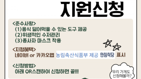 이천시 ‘안심식당’, 영업장에서 큐알(QR)코드로 간편하게 신청하세요