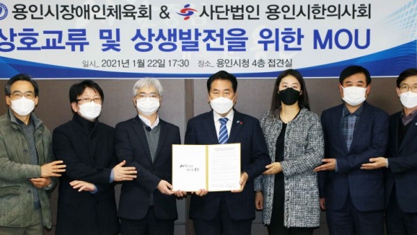 용인시는 22일 용인시장애인체육회와 (사)용인시한의사회가 체육회원들의 건강증진과 생활체육 활성화를 위한 업무 협약을 맺었다고 밝혔다. 22일 용인시장애인체육회와 용인시한의사회 업무협약식 시청 접견실에서 열린 이날 협약식엔 용인시장애인체육회 회장인 백군기 용인시장과…