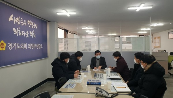 경기도의회 건설교통위원회 권재형 부위원장(더민주, 의정부3)은 13일 경기도의회 의정부상담소에서 경기도와 의정부시 담당 공무원 등이 참석한 가운데 지난 한해 시민교통 편의를 위한 노고에 감사와 함께 신년 인사를 전하고 G6000번 광역버스 증차에 관한 진행 현황과 주요 현안에 대해 논의…