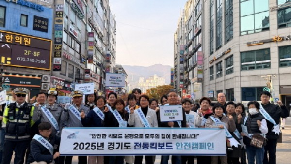 경기도의회 건설교통위원회 성복임 의원(더불어민주당, 군포4)은 6일 군포 산본역 일원에서 ‘전동킥보드 안전문화 캠페인’을 개최했다. 캠페인에는 경기도, 군포시, 군포경찰서, 군포의왕교육지원청 및 민간단체 회원 등 총 20여 명이 참석했다.251106 성복임 의원, 산본역서 전동킥보드 안…