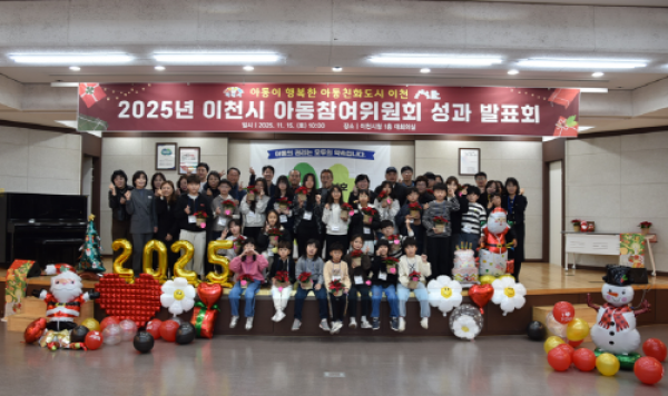 이천시(시장 김경희)는 11월 15일(토) 오전 10시, 이천시청 대회의실에서 ‘2025년 아동참여위원회 연간활동 성과 발표회’를 개최했다. 행사에는 이천시 아동참여위원, 아동친화도시 추진위원회 위원 및 보호자 등 60여 명이 참석했다.2. 2025년 이천시 아동참여위원회 연간활동 성과발표회 개최 매월 1회 아동참여위원회 정기회의를 통해 다양한 아동정책과 권리 증진 활동에 참여한 아동참여위원들의 성과를 공유하고, 한…