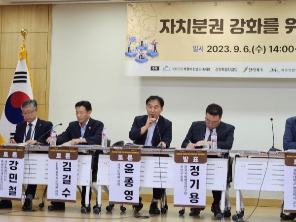 경기도의회 안전행정위원회 윤종영 의원(국민의힘, 연천)은 6일(수), 국회의원회관 제2소회의실에서 주최된 ‘자치분권 강화를 위한 특별자치도 공동세미나’에 토론자로 참여하여, 지방분권과 특별자치도의 발전 방향에 대해 논의하였다. 230911 윤종영 의원, 자치분권 강화를 위한 특별자치도 공동세미나 토론자로 참여 이날 토론회에는 김일재 한국지방행정연구원장의 개회사를 시작으로 박정하(국민의힘, 강원원주시갑), …