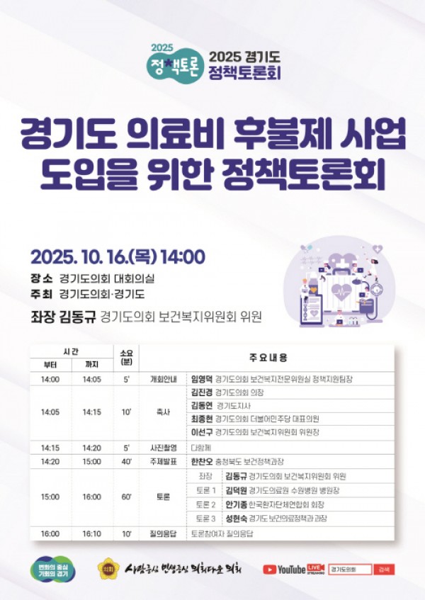 김동규 경기도의회 의원, 16일 ‘경기도 의료비 후불제 사업 도입을 위한 정책토론회’ 개최