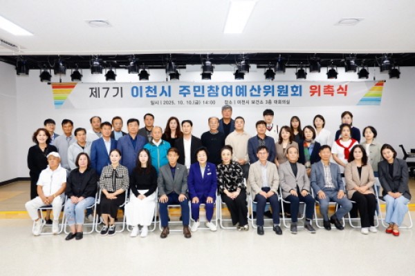 이천시(시장 김경희)는 10월 10일 보건소 3층 대회의실에서 ‘제7기 주민참여예산위원회’ 위촉식을 개최했다. 이번 위원회 위촉식에서는 공개모집과 읍면동 및 전문가 추천을 통해 신규 위원 23명과 연임 위원 22명 등 총 45명이 위촉됐다.2. 이천시 제7기 주민참여예산위원회 위촉식 개최1 특히 청소년을 비롯한 다양한 연령층과 전문성을 갖춘 위원들로 구성되어, 지역 현안에 대한 폭넓은 시각과 실질적인 의견…