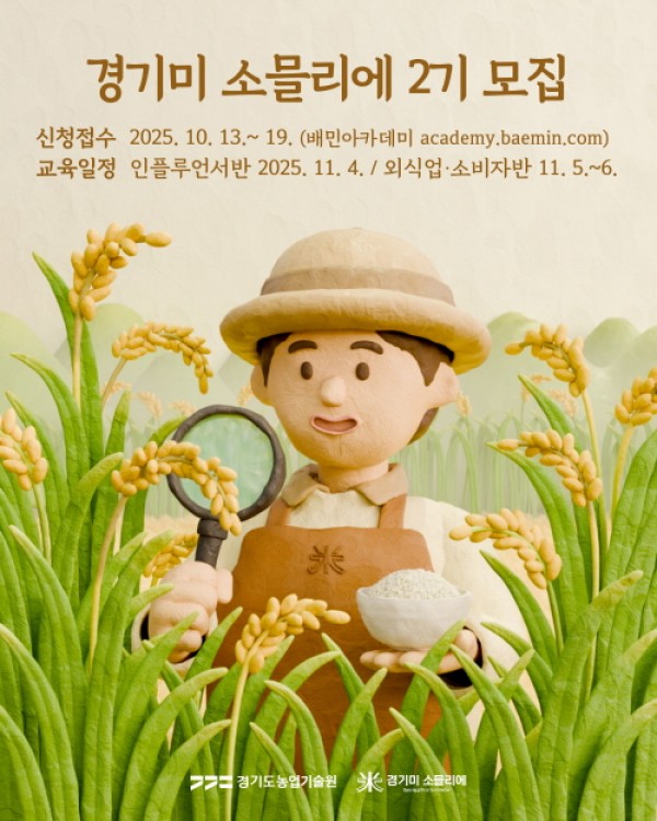 경기도농업기술원은 경기미 신품종의 인지도를 높이고 소비를 촉진하기 위해 ‘경기미 소믈리에 2기’ 교육생 72명을 모집한다.경기미소믈리에+2기+포스터경기미 소믈리에는 와인의 품질과 맛을 감별하고 안내하는 소믈리에 제도를 경기미에 도입한 것으로 다양한 쌀 품종별 차이를 이해하고 올바른 소비문화를 확산하는 역할을 한다.경기미+소믈리에+1기+(1)교육 과정은 11월 4일 ‘인플루언서’ 반, 11월 5~6일 ‘외식업·소비자’ 반으로 나…