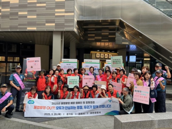 경기도와 과천시는 추석 명절을 앞두고 25일 정부과천청사역 일원에서 불법촬영 예방 캠페인과 합동점검을 진행했다.사진자료(13)경기도여성비전센터, 과천시, 과천경찰서, 시민감시단 등 40여 명은 불법촬영 대응 요령이 담긴 홍보 리플릿을 배부하고, 정부과천청사역과 별양동 우물가, 중앙공원 분수대 등 다중이용시설을 찾아 불법촬영 기기 설치 여부를 확인했다.앞서 도는 지난 6월과 7월 가평군, 파주시에서 도-시군-시민 합동점검을 실시…