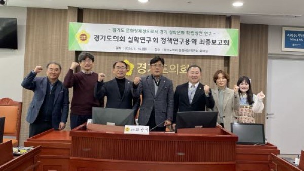 경기도의회 최만식 의원(농정해양위·더불어민주당, 성남2)이 회장으로 있는 도의회 실학연구회는 경기 실학문화를 +경기도정과 도민 삶의 질 향상 등에 접목하기 위한 정책 연구용역 최종보고회를 15일 개최했다. 240116 최만식 의원, '실학의 실사구시 정신 통해 도민 삶의 질 향상 최선' 강조이날 보고회에는 연구회 최만식 회장을 비롯해 회원인 김선영 의원(경제노동위원회), 김철진 의원(문화체육관광〃) 등 회원과…