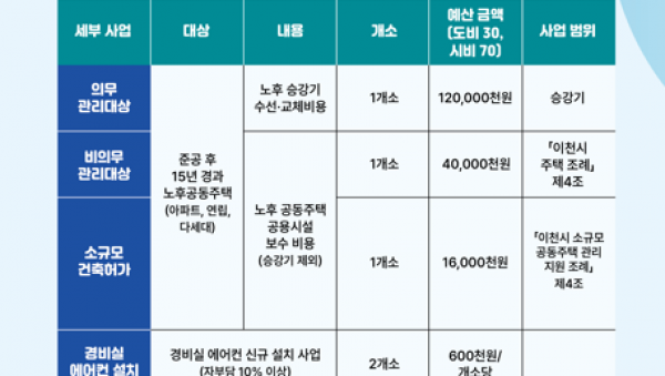 이천시, 2024년 노후 승강기등 공동주택 주거환경개선 지원사업 추진