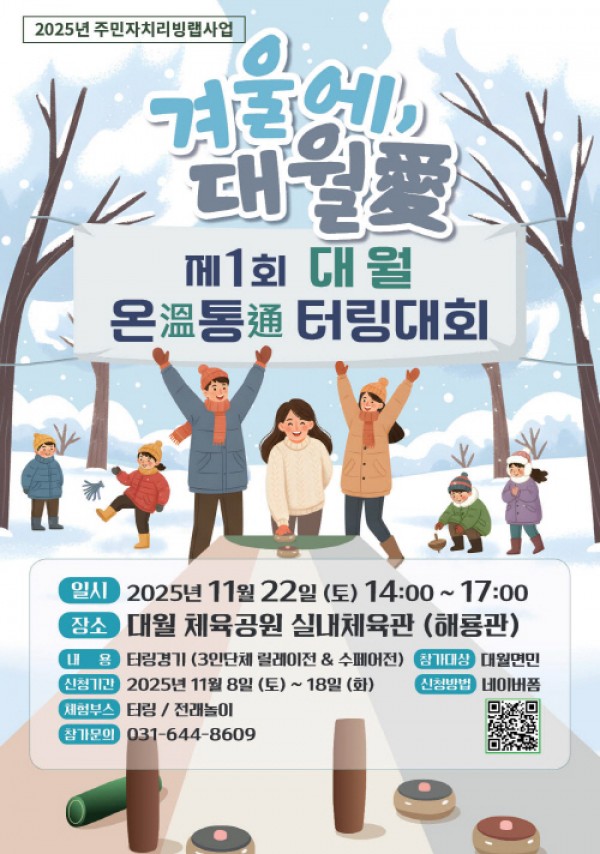 이천시 대월면 주민자치회는 오는 11월 22일(토) 오후 2시부터 5시까지 대월체육공원 실내체육관에서 주민이 함께 즐기는 뉴스포츠 축제 「겨울에, 대월愛」- 제1회 온통 터링대회를 개최한다고 밝혔다. 이천시 대월면, '가을에, 대월애' - 제1회 온통 터링 대회 이번 대회는 남녀노소 누구나 쉽게 즐길 수 있는 생활스포츠 터링을 중심으로 구성되며, 겨울철 실내, 외에서 모두 즐길 수 있는 안전하고 건…