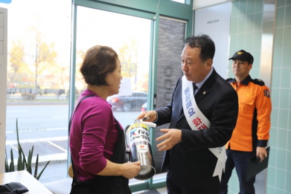 경기도의회 안계일 의원(국민의힘, 성남7)은 14일, 성남시 분당구와 분당소방서가 공동으로 추진한 ‘분당구 안전 점검의 날’ 합동 캠페인에 참여해, 겨울철 화재 위험이 높은 음식점과 다중이용시설을 대상으로 화재 예방 홍보 활동을 펼쳤다.합동캠페인 사진2이번 캠페인은 연말을 앞두고 증가하는 주방 화재 및 유증기 폭발 사고를 예방하기 위해 마련되었다. 특히, 음식점 주방 화재에 효과적인 K급 소화기 40대를 관내 상가에 직접 전달…