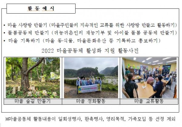 경기도, 귀농·귀촌인 정착 지원 위한 마을공동체 활성화 사업 참여 마을 모집