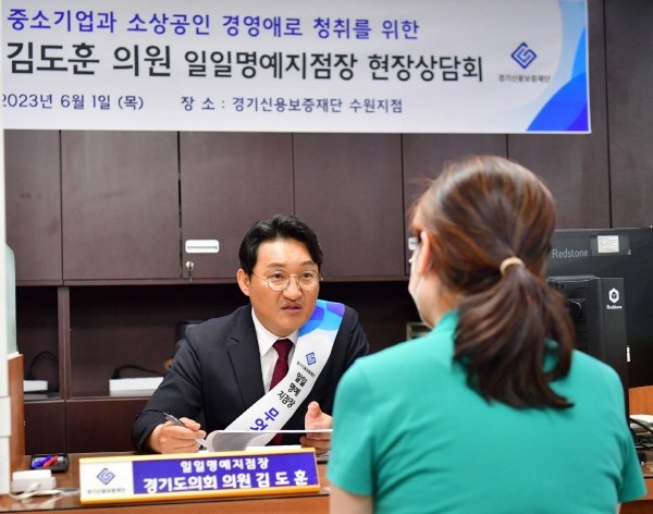 □ 경기도의회 경제노동위원회 및 예산결산특별위원회 김도훈 의원(국민의 힘, 비례)은 지난 1일(목) 경기신용보증재단(이사장 시석중, 이하 경기신보) 수원지점의 일일명예지점장으로 위촉돼 수원시 기업인과의 현장소통을 실시했다고 밝혔다. 230601_김도훈의원_수원지점 명예지점장(1)□ 이번 일일명예지점장 행사는 최근 어려운 경제환경 속 고군분투하는 수원특례시 중소기업·소상공인의 어려움을 살펴 지역경제 활성화 방안…