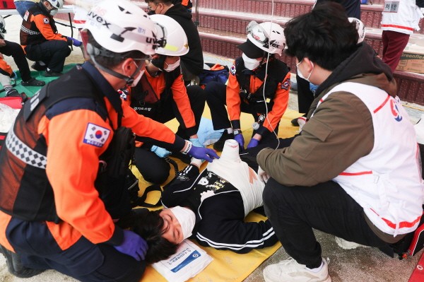 #. 26일 오후 의정부 녹양중학교. 수업이 한창이던 학교에 신원 불상의 테러범들이 총기를 난사하며 침입, 3층 교실 1개반 29명을 인질로 붙잡았다. 한편에서는 중화기를 장착한 드론 2대가 공격을 퍼부은 데 이어 드론 1대가 3층 교실 내부에서 폭발하며 곳곳에서 비명이 들렸다. 이에 경기도는 사회재난 시스템‧매뉴얼에 따라 경찰, 소방, 군, 교육청 등 관계기관과 협력해 테러범 진압 및 인명 대피 작업에 나섰다. 20…