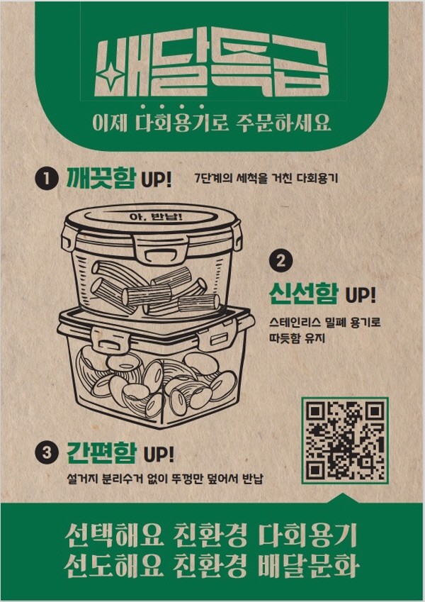 경기도와 경기도주식회사가 함께하는 공공배달앱 배달특급이 지난해까지 용인 수지구와 화성 동탄에서만 운영하던 다회용기 사업을 올해 도내 6개 지자체로 확대 운영한다.기존 지역에 올해 추가로 진행되는 곳들은 김포시(전역)와 안산시(고잔동·초지동·월피동·성포동) 안성시(안성 1·2·3동), 시흥시(배곧동·정왕동)다. 참고1_다회용기+전단지_1면 가장 먼저 김포시에서는 4월 13일부터 다회용기 가맹점 주문이 가능하다…