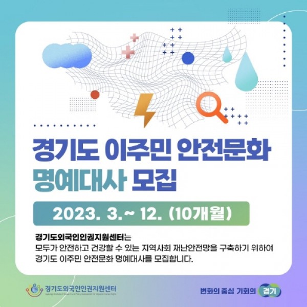‘경기도 이주민 안전 문화 명예 대사’ 모집… 재난 대응 지침 제작·안전 정보 전달